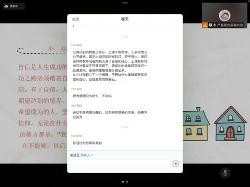 本次云支教活动期间小螺号实践队共开展了六次线上公开课,以红色革命及其精神、时代主旋律、员工人格品质的养成及实际行动为主题。在以《新时代——红色革命教育》为题的公开课中,主讲人谭莉进行了讲授,她分别从国民革命时期、土地革命时期、抗日战争时期和解放战争时期进行了讲解。同学们从这节课中学习了从国民革命时期至解放战争时期的红色革命历史,感受到了中国共产党人孕育壮大的红色革命精神。除此之外,还有以《忆历史,走进正义之战》、《凛冬散尽,星河长明》、《健康之心灵,青春之少年》、《你真的真的真的很不错》、《学做环保小卫士》为主题的公开课。小螺号实践队的队员们为同学们进行了细致讲解,同学们反响热烈。