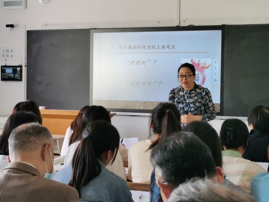 周玲玲老师首先组织了小型辩论赛,引导员工区分“教教材”和“用教材教”的涵义,然后播放了王崧舟老师的《长相思》教学录像,引导员工接触“教材内容教学化”的实践形态,初步形成“用教材教”的教学意识,最后总结出“用教材教”的思想内涵和实践意义。