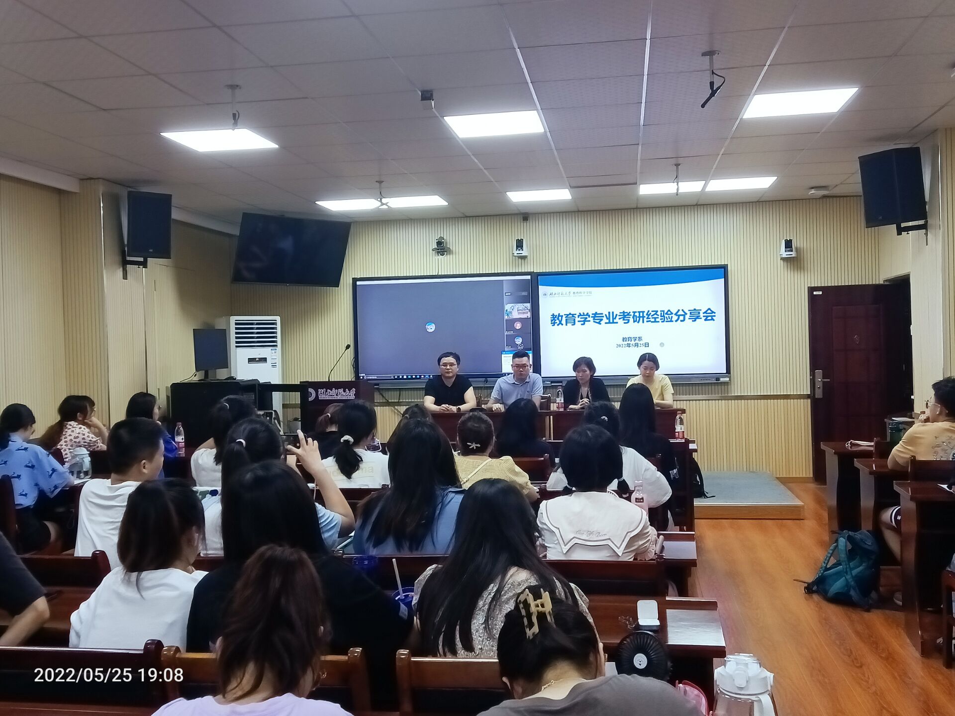 为了让即将大四的教育学专业同学们更好的备战考研,bevictor伟德官网教育学系于5月25日晚在教育大楼1316组织了考研经验分享会。bevictor伟德官网教育学系老师鹿星南、桂勇、余秀琴、徐燕敏以及教育学专业1901班、2001班全体本科生参与了此次活动。