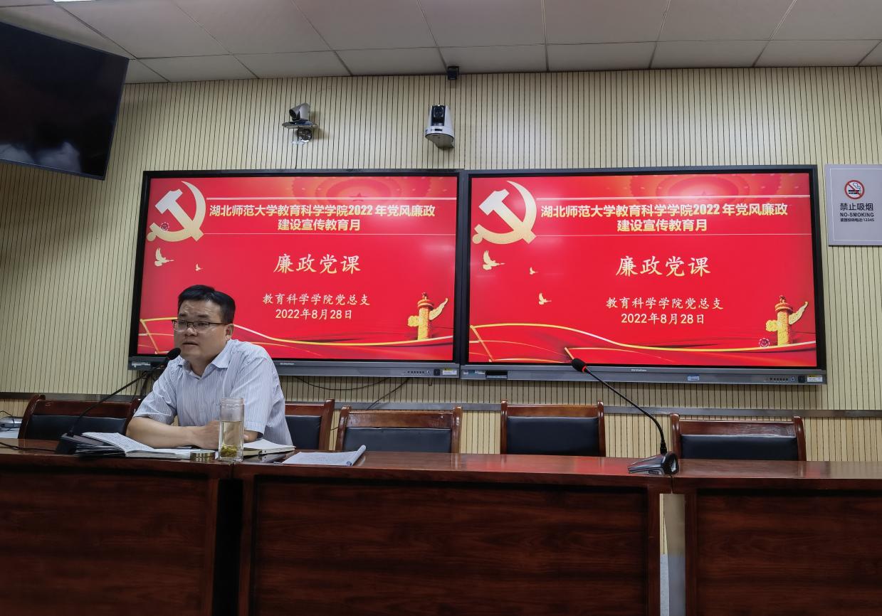 讲课过程中,徐明波书记首先从活动主题、活动内容和工作要求等三方面传达学习了《关于印发<bevictor伟德官网2022年党风廉政建设宣传教育月活动方案>的通知》(湖师党〔2022〕34号)学校文件精神,接着从工作纪律和规范、安全稳定工作、网上意识形态管控、文明城市创建和下基层察民情解民忧暖民心实践活动等几个方面进行了详细讲解。徐书记用朴素的语言深刻地阐释了党风廉政建设的重要性,全体教职工均认真聆听并做了相应的学习笔记,达到了廉政党课的预期效果。