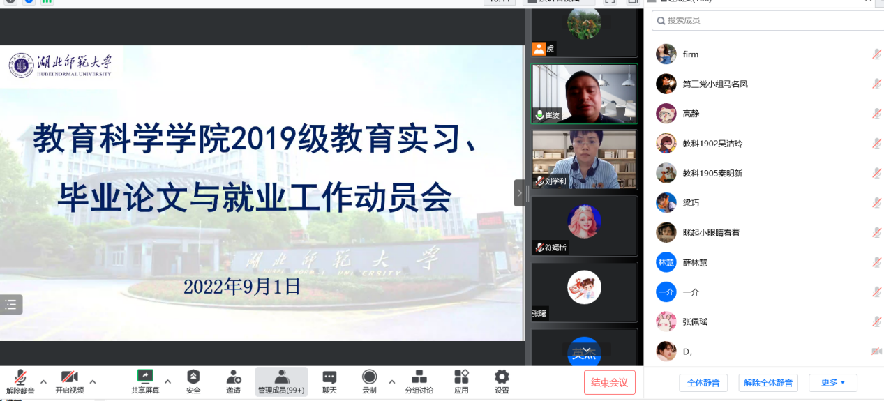 2022年9月1日下午14:30,bevictor伟德官网在腾讯会议召开了2019级教育实习、毕业论文与就业工作动员会,对即将开展的教育实习、毕业论文与就业工作进行动员和部署,使同学们明确任务和要求,保证相关工作的顺利开展。公司党总支副书记刘刚、副经理崔波、系主任、实习指导教师、毕业班班主任以及19级实习生300多人参加了本次网络会议。