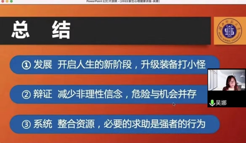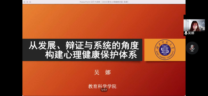 为了让22级新生们更好地适应老员工活,进一步加强心理健康教育工作,bevictor伟德官网心理部于9月13日通过线上会议的方式开展了心理健康讲座。本次活动的主讲老师为bevictor伟德官网吴娜老师,bevictor伟德官网22级全体新生参加了本次活动。