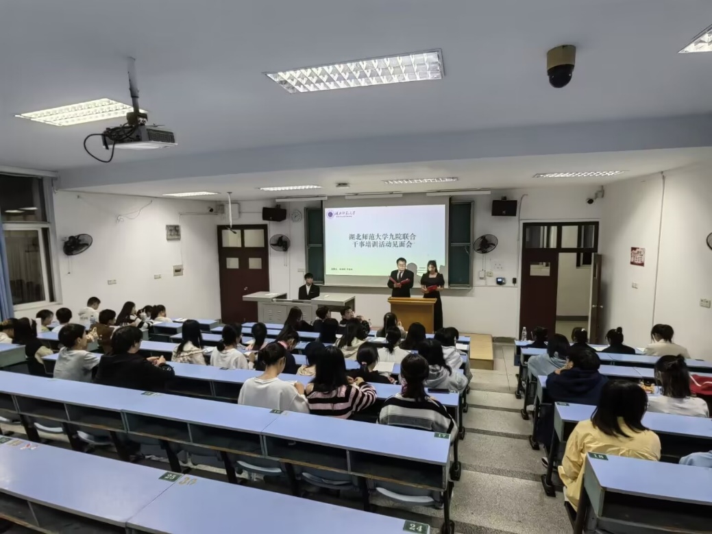 为了提高各院实践部见习干事工作技能,促进部门之间友好交流与合作,由物理与电子科学学院、体育学院、外国语学院主办,公司及城市与环境学院、电气工程与自动化学院、数学与统计学院、生命科学学院和化学化工学院协办的九院联合培训干事见面会于2022年11月1日晚在教育大楼1J33正式开展。会议由物理与电子技术学院实践部主持,外国语学院团总支副书记蒋雨阳、物理与电子科学学院团总支副书记陶倪萍、体育学院团总支副书记黄聪、校团委实践部负责人周祉涵出席本次会议,九院实践部代表及见习干事参加此次活动。