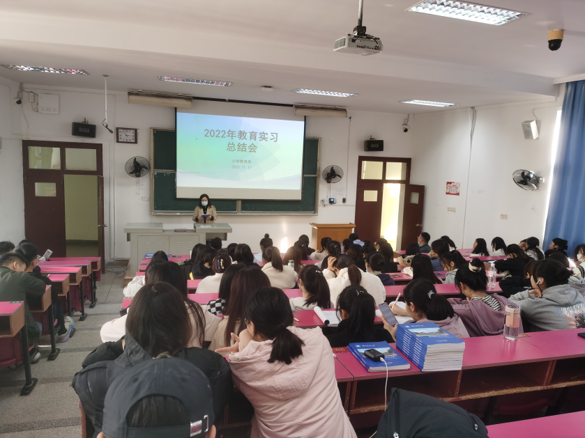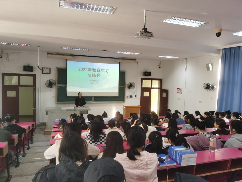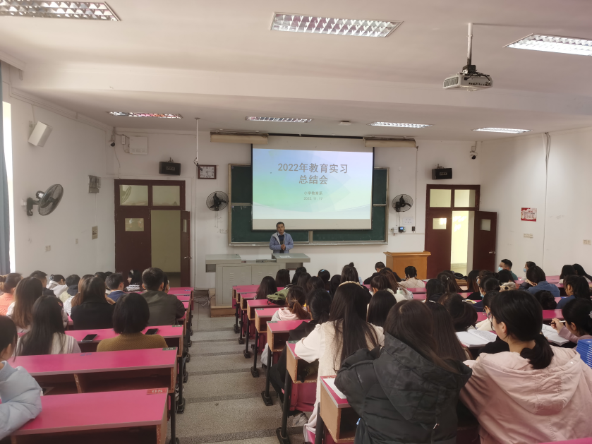 2022年11月17日,小学教育系在教育大楼1J22举行教育实习总结会。会议由系主任周英杰主持,崔波副经理、刘学利副教授、郭文毅老师、朱培芳老师和全体在校实习生参加了本次会议。