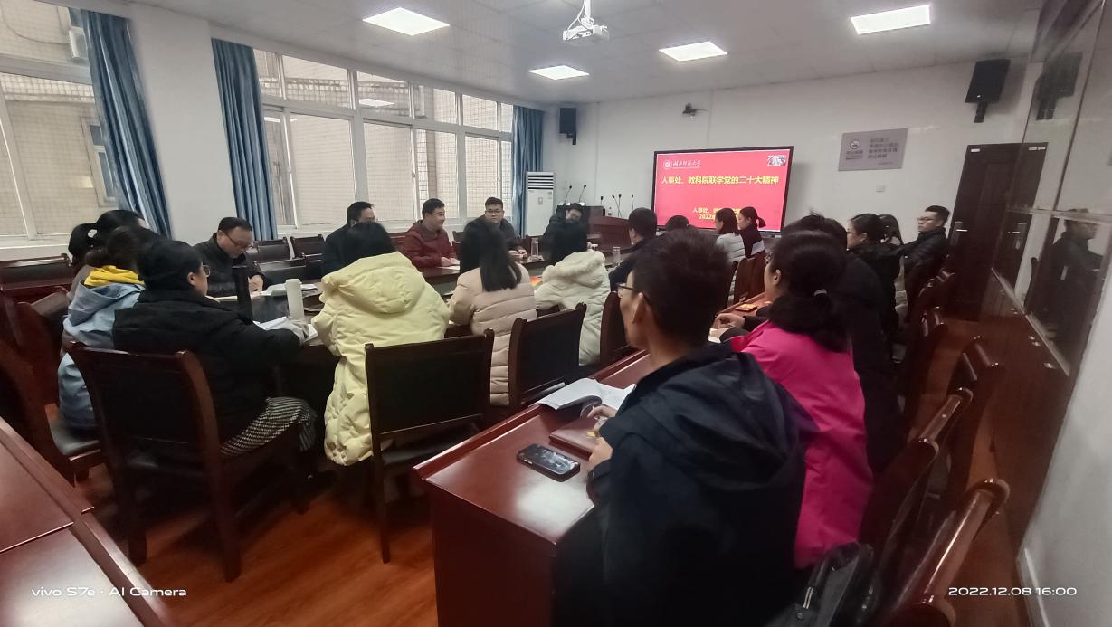 2022年12月8日下午,教科院教师党支部和机关第三党支部在教育大楼1317A会议室举行联学活动,专题学习了习近平总书记在中国共产党第二十次全国代表大会上所作报告中的部分内容。会议由教科公司党总支书记徐明波主持,机关第三党支部和教科院教师党支部党员参加了会议。