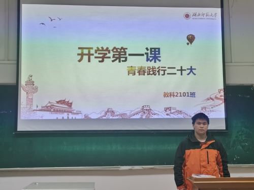 班会伊始,班长唐陈晨通过视频为大家介绍了党的二十大的主题与精神内涵。随后,他分享了自己在寒假过程中的见闻与感悟,并呼吁同学们做好新学期规划,明确自身学习目标。接着,徐燕敏老师向大家强调了新学期同学们的人身安全问题。她希望同学们能够遵守学校规章制度,注意自身安全防护。同时,要按时完成教师培训课程。最后,三位员工代表围绕新学期规划等主题相继上台发言。