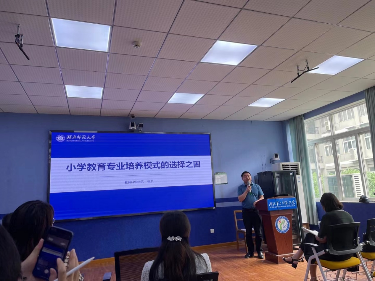 5月28日上午,第十届湖北省小学教育专业建设研讨会在湖北第二师范学院教师素质训练中心召开。本次会议的主题是“新文科背景下小学教育专业高质量发展”,来自湖北省教育学会小学教育专业委员会的24所成员高校相关学院领导、专业负责人、专业教师代表及员工近90人参会。崔波副经理作了题为《小学教育专业培养模式的选择之困》的主题发言,介绍了公司小学教育专业的发展历程和办学特色,分析了小学教师全科培养的政策导向和现实困境,提出在当前小学教师招录政策背景下实施分学科培养的设想,讨论了小学教育专业分学科培养中的课程设置和课程内容整合等问题,主题发言得到与会代表的高度肯定。