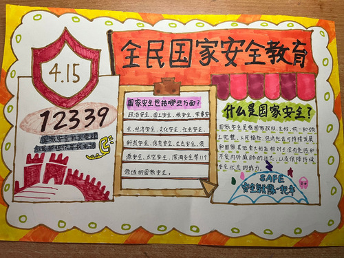 本次活动共有27名同学参加,同学们以饱满的热情,认真搜集资料,积极动手,精心设计。大家通过绘画的方式,抒写着自己对国家安全的认识与情感;用手中的画笔,绘制出一幅幅主题鲜明、图文并茂、内容丰富、设计新颖的国家安全教育小报;通过优美有力的笔触,表达了自己对国家安全观的理解。经过校园安全部干事的认真评选,本次比赛的获奖情况如下,一等奖获得者:毕亚兰,二等奖获得者:丁玲、张欣雨,三等奖获得者:周欣雨、熊姿、沈媛。