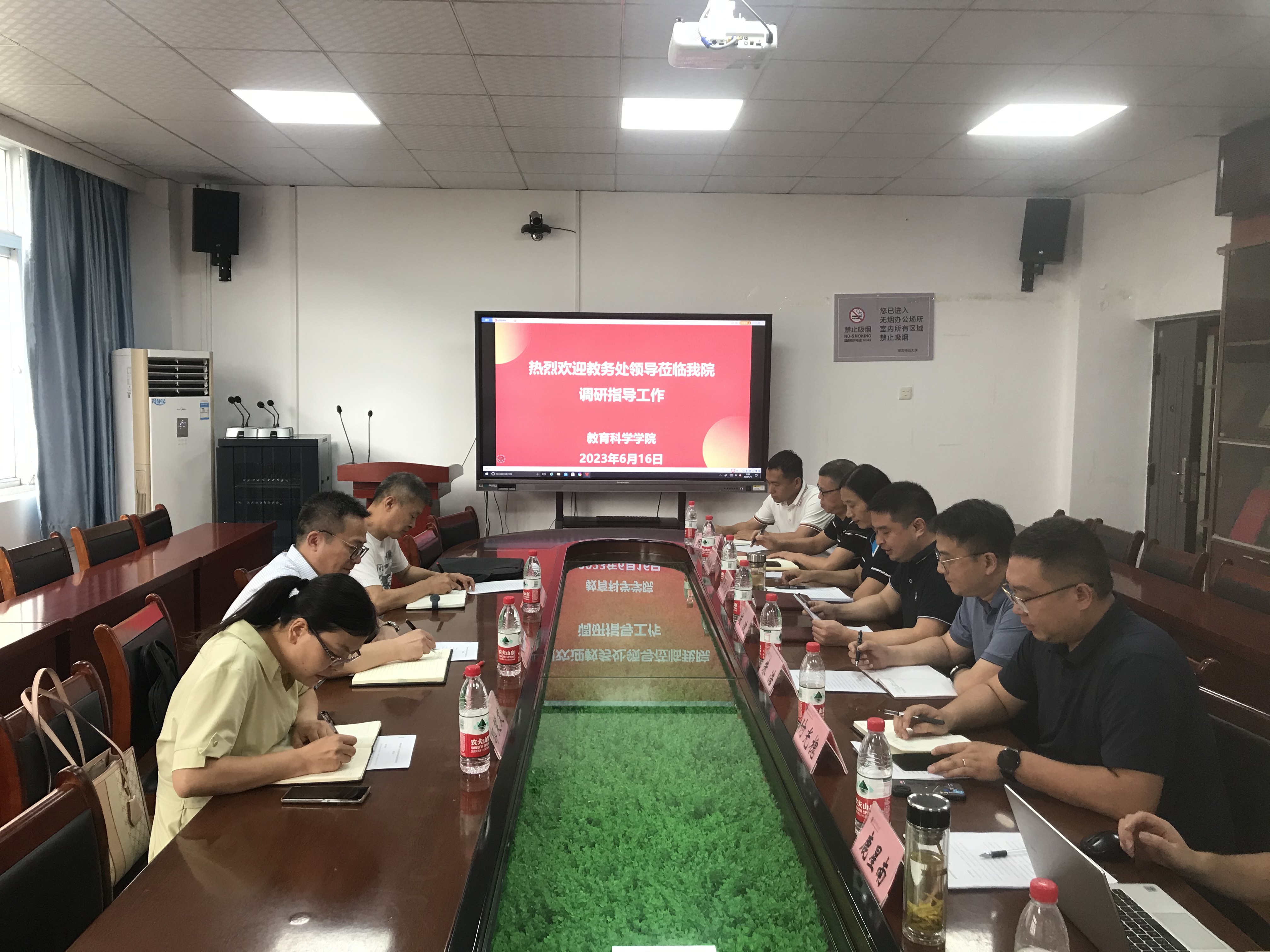 6月16日上午,教务处胡艳军处长、黄海军副处长、郭笑笑老师一行来公司调研一流本科专业建设和劳动教育课程建设情况。经理朱浩、副经理崔波、小学教育国家级一流本科专业建设点负责人张小菊、教育学省级一流本科专业建设点负责人付光槐及全体系主任参加调研会。会议由经理朱浩主持。
