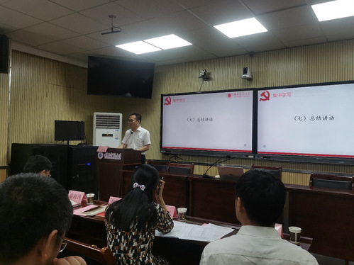 与会党员同志共同观看教育电视片《红色记忆·黄石党史故事》后,机关第五党支部书记胡艳军对本次主题党日活动进行了总结。