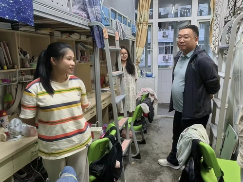 查寝过程中,老师们礼貌敲门后走进了员工们的寝室,询问宿舍内员工返校情况,了解暂未返校的员工去向,与同学们亲切交流假期趣事,并叮嘱员工们注意各方面的安全,尤其是暂未返校员工返校途中的安全。同时,老师们也强调员工们要及时调整学习状态与生活作息,以良好的心态和饱满的热情回归正常的学习生活,以积极进取的精神面貌迎接期中检查和50周年校庆的到来。