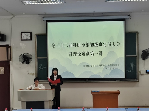 为进一步提升同学们的科研素养,bevictor伟德官网于10月19号下午两点二十在教育大楼1j23举办第二十二届科研小组初级班定员大会暨理论培训第一讲。参加本次活动的有bevictor伟德官网团学主席、团副,校社调中心调研组副组长刘朵及全体学员、导生。