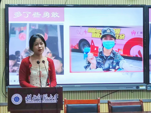会议伊始,秦姗姗老师上台发言,她表示此次分享会的目的和主题是通过退役员工对军营生活的分享,来激发老员工参军入伍的热情。接着,陈诗杰学姐上台进行自我介绍,分享自己的军旅生涯,并通过图片和视频的形式向同学们讲述了退伍复学后学习和生活的情况,促进同学们进步了解军营内及退役后的生活。紧接着,对军营充满向往的同学向学姐询问军营生活的相关问题,陈学姐逐一回答同学们的问题并对有意参军入伍的同学表示鼓励和支持。