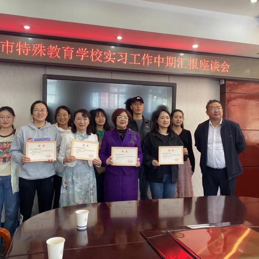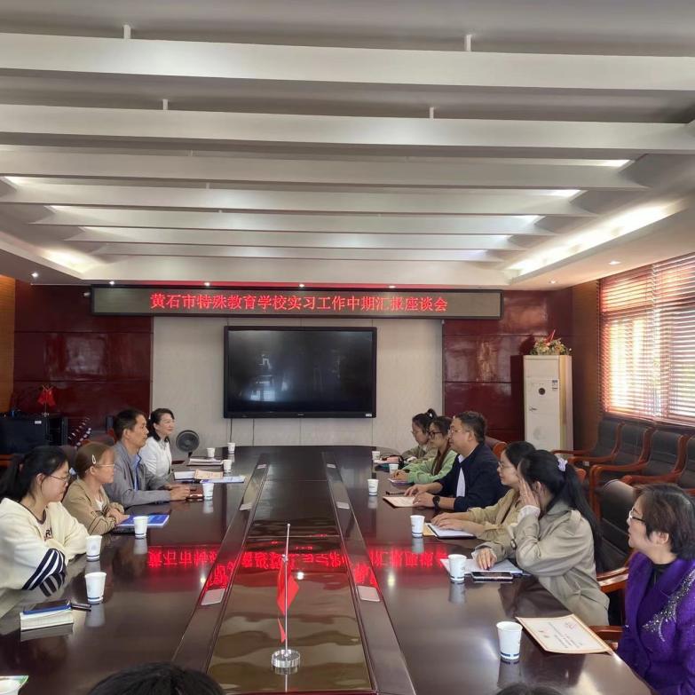 2023年10月23日,教务处付光槐副处长、bevictor伟德官网特殊教育系系主任谭金凤博士和张曦老师赴黄石市特殊教育学校检查了20级特殊教育专业旗下产业实习工作并看望实习生。与黄石市特殊教育学校张明生董事长、宋钊主任、实习指导教师代表和全体实习生进行了座谈。