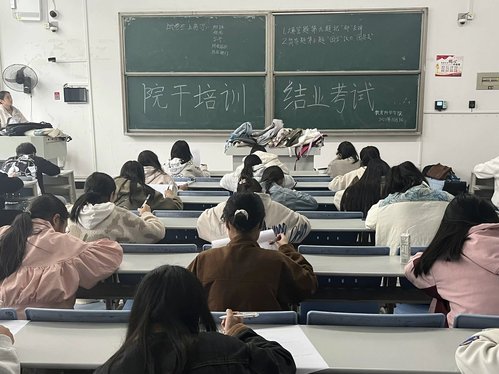 活动伊始,全体见习干事在相应的考场等候考试正式开始,每位见习干事都在安静的做着准备工作。到达考试时间后监考官开始分发试卷,各见习干事在拿到试卷后开始认真答题。在考试过程中,见习干事都遵守着考试规则,本着”沉着、认真、细心、守纪”的原则应对考试。最后,各见习干事完成试卷后有序地交卷离场。至此,院干培训结业考试顺利结束。