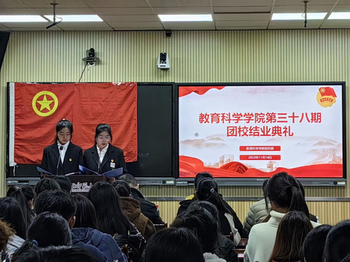 活动伊始,主持人介绍了参与本次结业典礼的嘉宾,并宣布典礼开始。接着,全体起立,奏唱团歌。然后优秀学员代表余逸晨上台进行发言,她讲述了在这次团校中的经历,以及团校对于她的重要意义,并呼吁大家勤奋学习、积极工作、不懈奋斗。接着,刘广兵书记对本次团校学员们的所思所学作出总结,他肯定了学员们的努力和成长,勉励他们不断完善自我,也对学员们未来的学习生活寄予厚望。随后,进入颁奖环节。刘广兵为优秀学员颁发荣誉证书,刘丽娟、秦姗姗和伊力扎提•阿布里米提为团校学员颁发结业证书。至此,本次典礼圆满结束。