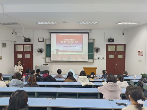 活动伊始,各班班长简单说明了本次活动的内容及其目的;接着,同学们同步观看直播,教育部副部长郝平同志领读宪法部分条款,同学们在云端同声诵读宪法,歌唱《宪法伴我们成长》歌曲,从歌声中体会宪法温度,感受宪法力量。最后,收听第八届全国员工“学宪法,讲宪法”活动优秀选手演讲及教育部领导讲话,其中提到当代老员工们要知行合一,学习宪法,践行宪法,发扬宪法,该讲话进一步明确了宪法对老员工的要求。