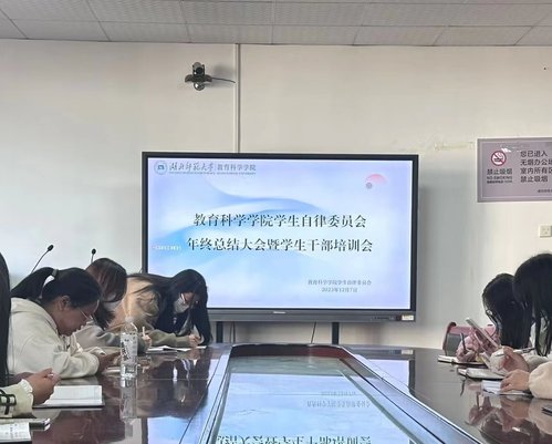 会议伊始,各部长依次陈述本学期的部门工作,并提出部门内部的困难。接着,员工自律委员会主席岳柳和金依强调各部门需重视对材料汇编的整理归档工作,提高推文与通讯稿的质量,并要求各部长为干事树立榜样,动员干事积极参与工作。最后,秦姗姗老师对本学年的工作进行总结,肯定了各部门的工作,也对大家在员工工作上的付出表示感谢,并对各部门的突出问题提出相应的改进方法,指出在以后的工作中要严格执行“三查”工作,提高白榜利用率,也提醒了大家在工作之余不忘自己的主责主业,好好复习,专心备考,为本学年的工作和学习生活画上一个圆满的句号。