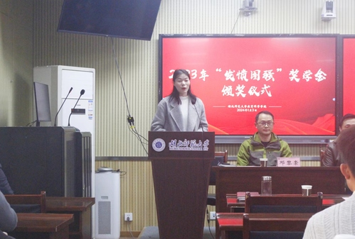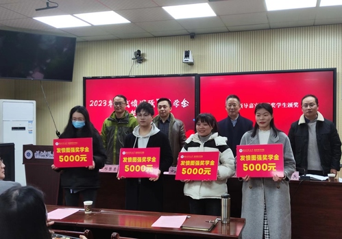 刘洋首先宣读2023年“发愤图强”奖学金获奖员工名单,并代表学校向涂艳国先生颁发捐赠证书。随后,领导嘉宾为获奖员工颁奖。