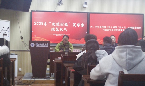 邓黎崇在讲话中对同学们提出三点希望:一是坚定理想信念,传承湖师精神,二是珍惜个人荣誉,努力奋发向上,三是常怀感恩之心,坚守责任担当。
