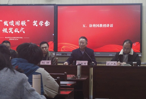最后涂艳国在讲话中回顾了发愤图强奖学金设立的初衷,阐释了“发愤图强”的涵义。他勉励同学们要“全面发展,健康成长”,希望同学们肩负时代使命,发愤图强,为中华民族的伟大复兴做出自己应有的贡献。