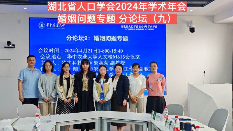 4月21日,湖北省人口学会2024年学术年会在武汉召开,会议由湖北省人口学会、华中农业大学主办,华中农业大学文法学院承办。华中农业大学党委副书记廖济忠、湖北省卫生健康委员会二级巡视员江中三、中国人口学会副会长陆杰华出席会议并致辞。公司李一帆老师、刘妍慧老师和王冲老师参加会议并应邀在分论坛汇报研究成果。本次会议为线下会议,由大会发言、专题论坛交流和海报展示等形式相结合的方式,主要围绕生育质量、婚姻质量、留守儿童和留守经历等主题进行深入研讨与交流,每个论坛设主持人和点评人。
