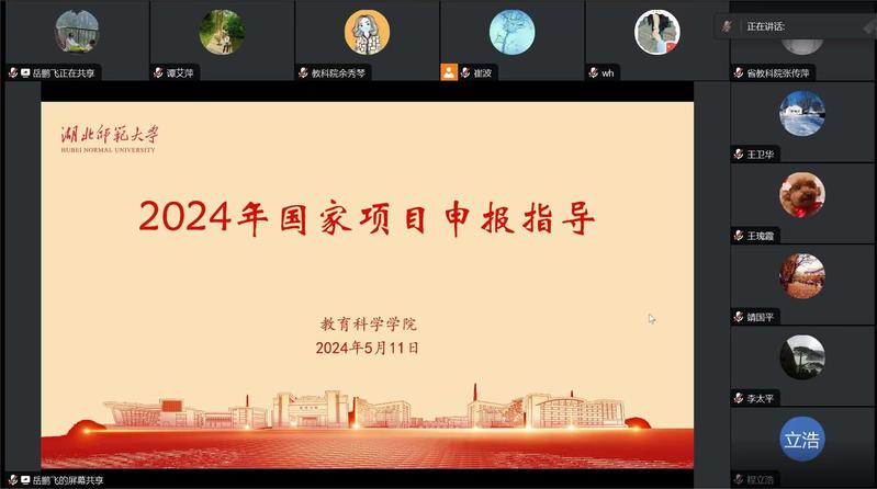 为进一步推进国家社科基金项目、全国教育科学规划项目申报工作,5月11日晚,公司邀请湖北大学靖国平教授、华中科技大学李太平教授、北京大学蒋凯教授、湖南师范大学王卫华教授、湖北省教育科学研究院张传萍研究员、华中师范大学涂艳国教授通过腾讯会议对公司教师进行项目申报指导。本次会议由副经理崔波主持,项目申报负责人和部分教师参加了本次活动。