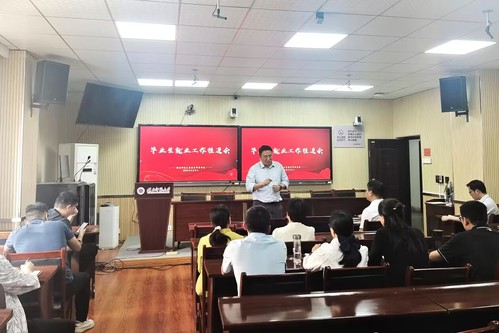 党委副书记刘广兵传达了学校就业工作相关会议精神,通报了2024届本科毕业生整体就业情况,并针对目前员工面临的就业困难,为班主任有力有效指导员工就业工作提供建议参考。