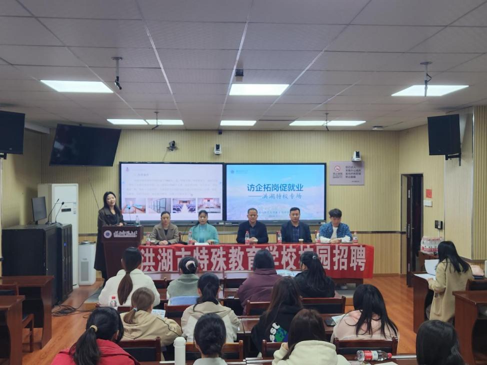 为进一步强化就业精准服务,促进毕业生高质量充分就业,bevictor伟德官网组织策划“特别的岗位 “职”给特定的你”——特殊教育专业系列招聘活动。3月11日,bevictor伟德官网在教育大楼1316会议室举行本次系列活动的首场招聘宣讲会。本次活动邀请到洪湖市特殊教育学校的领导老师一行来校进行招聘宣讲,招生与就业工作处副处长宋娜,公司党委副书记刘广兵,特教系教师张明平,特殊教育专业毕业生参加活动。