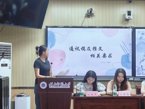 活动伊始,刘晓浅向新任员工干部们说明物品采购、财务报销及教室借用流程,强调相关注意事项,要求线上线下始终按照流程进行。接着,青年传媒中心前任部长李馨月讲解了通讯稿与推文格式要求,并列举了部分曾经出现过的错误来提醒各员工干部。之后,刘施雨给新任员工干部详细地讲解了到梦空间的使用方法以及怎样及时解决出现的问题。最后,刘诗雅补充强调各部门工作注意事项,并勉励新任员工干部认真工作,恪守职责。