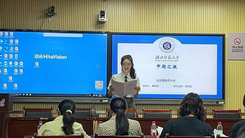 此次学前教育专业硕士研究生中期考核共有25名研究生参加,分成两个小组进行,1317A教室由秦振飙、桂勇、李璐、岳鹏飞等教师组成考核小组,1316教室由刘妍慧、谭金凤、陈菲菲、吴娜等老师组成考核小组。员工通过PPT,依次汇报思想、学习、科研和论文完成进度等方面的情况,考核小组对研究生逐个进行评议,重点对员工的论文研究情况进行指导。