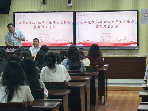 2024912日晚7:00,教科院在教育大楼1316会议室召开了2024级研究生师生见面会暨师生互选会。会议由崔波副经理主持,学院班子成员、研究生导师、研究生秘书、研究生辅导员及2024级全体研究生参加了本次会议。