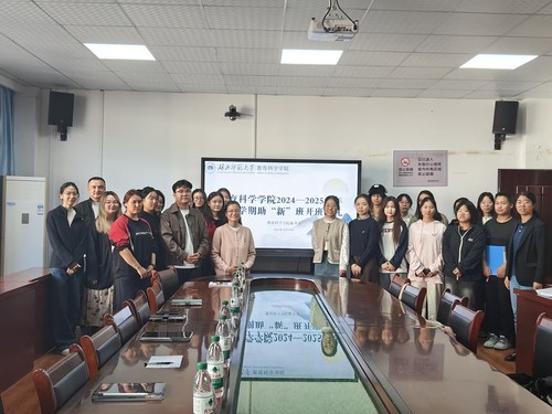 活动伊始,黄璐亚、孙风玲对将要讲授的英语和普通话教学课程进行深入细致的阐释,并介绍了后续课程的内容安排,助力新疆学子巩固基础知识并进行专项学习。接着,伊力扎提对助“新”班的学习生活寄予希翼,强调通过不懈的努力,新疆学子有望在未来取得成就,为家乡的发展贡献自己的力量。夏青腾在总结发言时强调同学们应当严格遵守纪律,保持良好的学习态度和生活秩序。他还指出,同学之间应当团结互助,共同营造和谐的学习环境,共同克服学习和生活中的挑战,实现个人和集体的双丰收。在会议结束之际,全体与会人员共同留下了合影,以记录这一重要时刻。