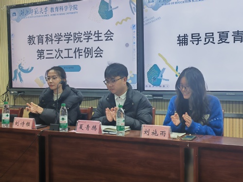 会议开场,员工会成员的自我介绍增进了彼此了解。紧接着,各部门负责人详细汇报本月工作进展,对已落幕活动深入剖析总结。夏青腾老师随后总结发言,高度赞赏各部门工作态度,同时提出明确要求:遇问题及时处理、部门间紧密协作、新成员保持热情,强调员工会团结一心服务学院师生的宗旨。最后,主席团针对近期常规问题查漏补缺,督促优化工作流程以打造更优质的员工会。