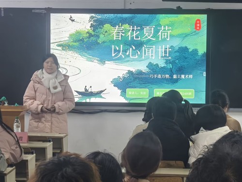 活动伊始,由主持人郑紫嫣向大家介绍了莅临本次比赛的评委以及比赛流程。活动期间,选手们依次上台,通过幻灯片和视频等形式展示自己的黏土作品以及创作理念。最后由严春霞对整个活动进行总结点评。严春霞首先肯定了各位决赛选手的作品,接着对黏土的制作方式提出了一些建议,并期待在之后的作品创造中能看到同学们对中华优秀传统文化有更深刻的理解和创新性运用。活动最后,由主持人宣布比赛结果,评委老师与选手合影留念。本次比赛一等奖得者:张欣、赵嘉怡;二等奖获得者:吴倩、李钰琪、王晓霏;三等奖获得者:谢馨悦、杨诗语、周莹倩、卢馨怡、连欣怡;优秀奖获得者:刘思萦、陈涵、梁宇菲。