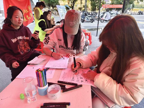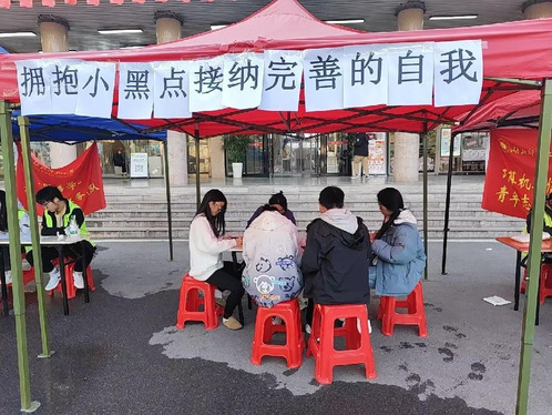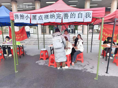 为了使同学们更好地认识自己的缺点,接纳不完美的自我,增强自信心和幸福感,bevictor伟德官网员工会心理部于11月30日在琼林苑门口举办了以拥抱小黑点—接纳完整的自我为主题的活动,部有兴趣的员工参加了此次活动。