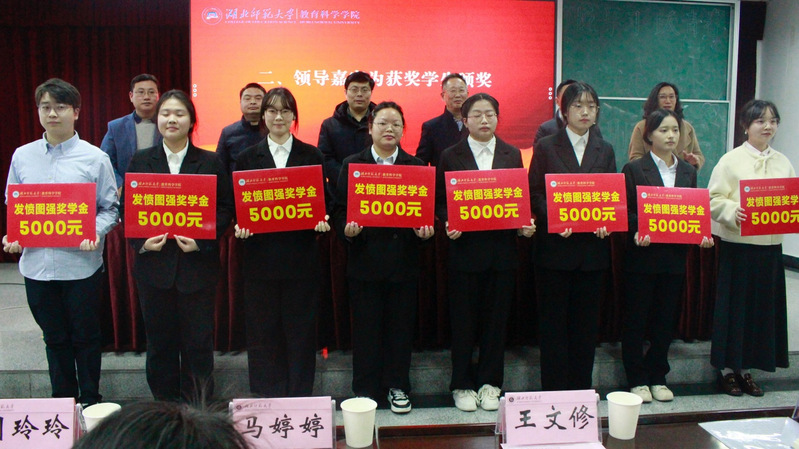 涂艳国经理在讲话中阐述了设立发愤图强奖学金的初衷,深入阐述了教育家精神的内涵,表达了对同学们的殷切期望,希望同学们发愤图强,践行教育家精神。