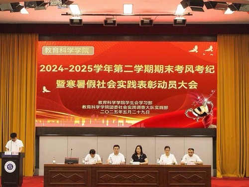 会议第二项由实践部部长谢昱棋介绍社会实践调查工作,继而刘丽娟宣读表彰文件。紧随其后进入颁奖环节,由领导老师们为获奖选手颁发荣誉证书及奖品,鼓励大家向优秀榜样学习。然后由优秀员工代表冯平丽上台发言,分享其实践经验。最后,由刘广兵作总结并进行动员发言,让全体师生对考试的严肃性和规范性有了更加深刻的认识,同时鼓励大家积极参与社会实践活动,书写奋斗华章。
