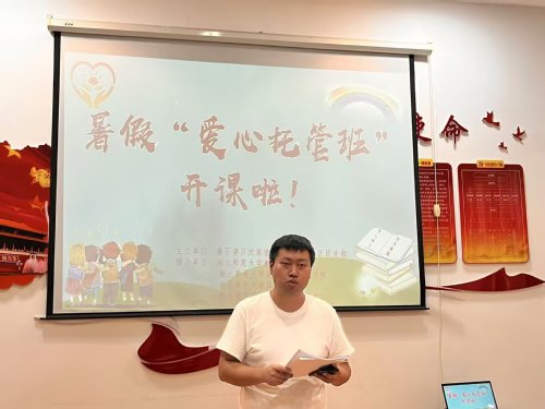 活动伊始,张辉书记安排了小朋友和实践队员的签到活动,并向家长发放了《爱心托管安全承诺书》,强化家校协同育人意识。紧接着,张辉书记重点强调了班级纪律规范,明确了违纪处理办法,并特别强调防溺水、防中暑等暑期安全重点。通过如此制度化、规范化的管理流程,不仅提高了托管服务的专业性,也为后续教学活动奠定安全基础。张辉书记指出:“这类活动要实现‘双赢’——孩子获得成长,老员工得到锻炼”。随后,小朋友与实践队员一同合影,标志着开班典礼落下了帷幕。
