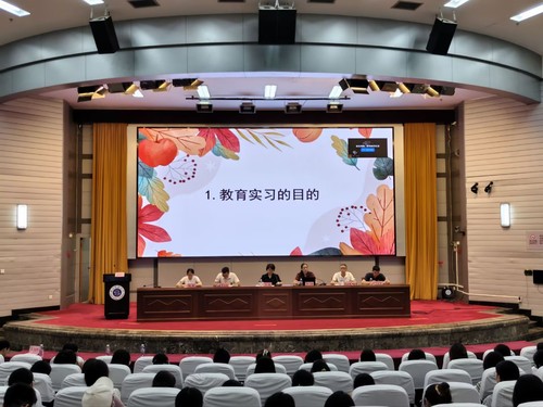 大会伊始,张小菊作动员讲话。深刻有力的阐述了教育实习的目的与意义,强调了教师职业专业化的重要性及教师专业知识形成的必然需求。张小菊指出,教育实习是深化理论知识学习、实现理论向实践转化的关键环节,并提醒同学们在实习过程中要准确把握“实习教师”与“员工”的双重身份,积极完成角色转换。随后,马婷婷为同学们送上真挚的实习寄语,勉励大家珍惜实践机会,锤炼教学本领。胡碟分享了对教育事业的深刻理解与对未来的美好展望,展现了教科院学子的专业素养与理想追求。最后,罗杨在总结讲话中着重强调了“安全第一”的根本原则,叮嘱同学们注意在实习学校的一言一行,并引导大家明晰未来职业规划,带着明确的目标投入实习,在实践中增长才干。