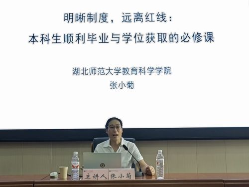 接着,张小菊老师介绍了学士学位授予细则的最新改动,强调学习新的学士学位授予细则的重要性,并分别从学士学位授予条件、不能授予学士学位情况、破格授予学士学位情况、学士学位授予程序四个方面详细阐述了学士学位细则的内容。