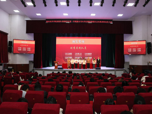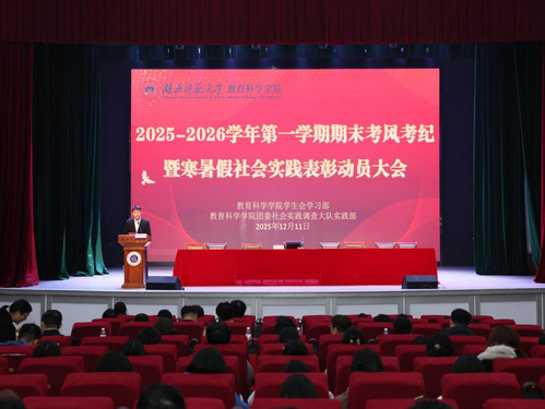 为筑牢诚信考试防线,营造公平公正的考试环境,鼓励员工参与社会实践,12月11日下午,教科院在大礼堂召开2025-2026学年第一学期期末考风考纪暨寒暑假社会实践表彰动员大会。公司党委副书记刘广兵,副经理张小菊,学工办主任秦姗姗,团委书记刘丽娟,辅导员夏青腾、夏木斯亚、吕经纬,25级各班班主任。各年级员工代表及全体24、25级本科生、研究生参会,会议由吕经纬主持。