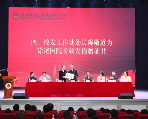 颁奖环节后,员工工作处处长陈敬道代表学校为涂艳国经理颁发捐赠证书,现场响起阵阵热烈掌声致谢涂经理的无私奉献。
