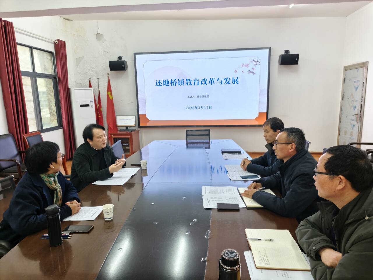 为深度凝练乡村教师队伍建设实践经验、系统破解乡村教育优质均衡发展瓶颈,充分发挥湖北省人文社科重点研究基地智库服务与科研引领功能,近日,基础教育高质量发展研究中心邹从容名师工作室团队赴大冶市还地桥镇中心学校开展乡村教师发展学校建设专项指导。本次活动特邀基础教育领域资深专家、原湖北省教育科学研究院常务副经理傅华强教授共同参与。还地桥镇中心学校领导班子、学科教研骨干、各校区负责人参会交流。